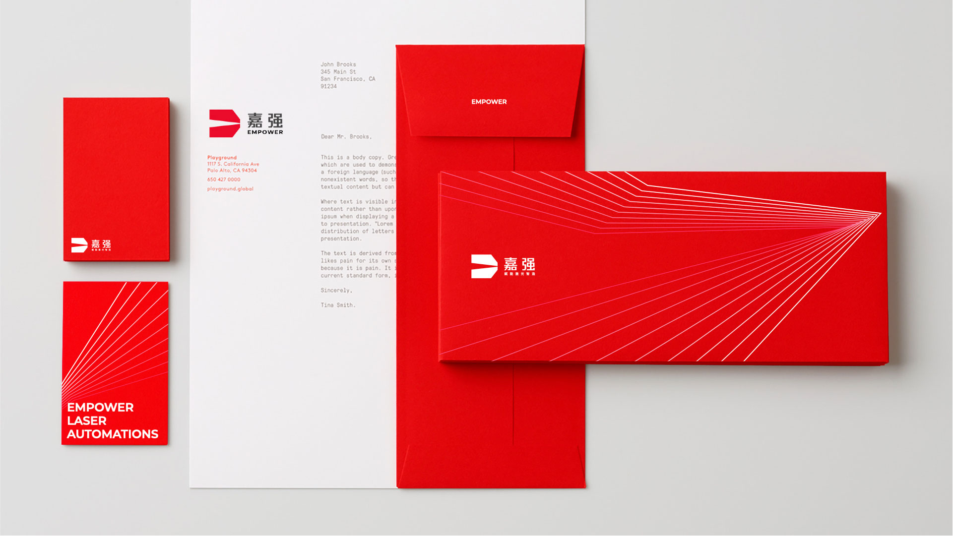 借由品牌煥新的契機(jī),我們與嘉強(qiáng)共同重新梳理了品牌定位“賦能激光智造”,作為指導(dǎo)嘉強(qiáng)視覺(jué)的發(fā)展方向,借以嶄新,專業(yè)的語(yǔ)氣,傳遞出更為強(qiáng)烈的品牌聲音;在嘉強(qiáng)的全新品牌視覺(jué)上,我們打破行業(yè)激光視覺(jué)同質(zhì)化嚴(yán)重的現(xiàn)狀,轉(zhuǎn)變了行業(yè)既有傳統(tǒng)制造業(yè)的印象,提出了“光能不息”的視覺(jué)概念,并通過(guò)光能這一概念核心,塑造更高視野、更具包容度的品牌視覺(jué),使整體視覺(jué)即符合工業(yè)制造的屬性,亦能囊括激光制造的工作屬性,在品牌標(biāo)識(shí)設(shè)計(jì)中我們貫徹“光能不息”的視覺(jué)概念指導(dǎo),通過(guò)光線向前的方向結(jié)合正負(fù)空間的設(shè)計(jì)手法表達(dá)出不斷向前、賦能的態(tài)勢(shì)。在品牌色彩的規(guī)劃中,我們保留嘉強(qiáng)紅這一品牌視覺(jué)資產(chǎn),并對(duì)其進(jìn)行亮度與飽和度的提升,使嘉強(qiáng)紅更具能量感,與標(biāo)識(shí)結(jié)合更好的承載與訴說(shuō)嘉強(qiáng)“賦能激光智造”的品牌核心語(yǔ)言。整體品牌視覺(jué)的煥新更具現(xiàn)代工業(yè)制造的行業(yè)感受,也承載了嘉強(qiáng)未來(lái)發(fā)展大趨勢(shì)下不斷賦能激光制造行業(yè)的理想。