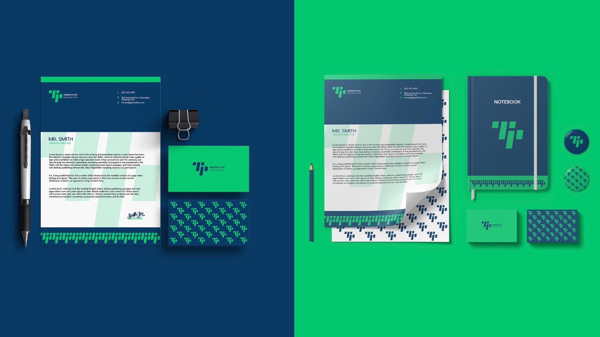 根據實際業務的需要進行品牌設計應用的內容,比如:辦公用品系統包括名片、信紙、信封和其他辦公室用品。這里展示了文具的不同模型,讓你大致了解它們在打印后的樣子。